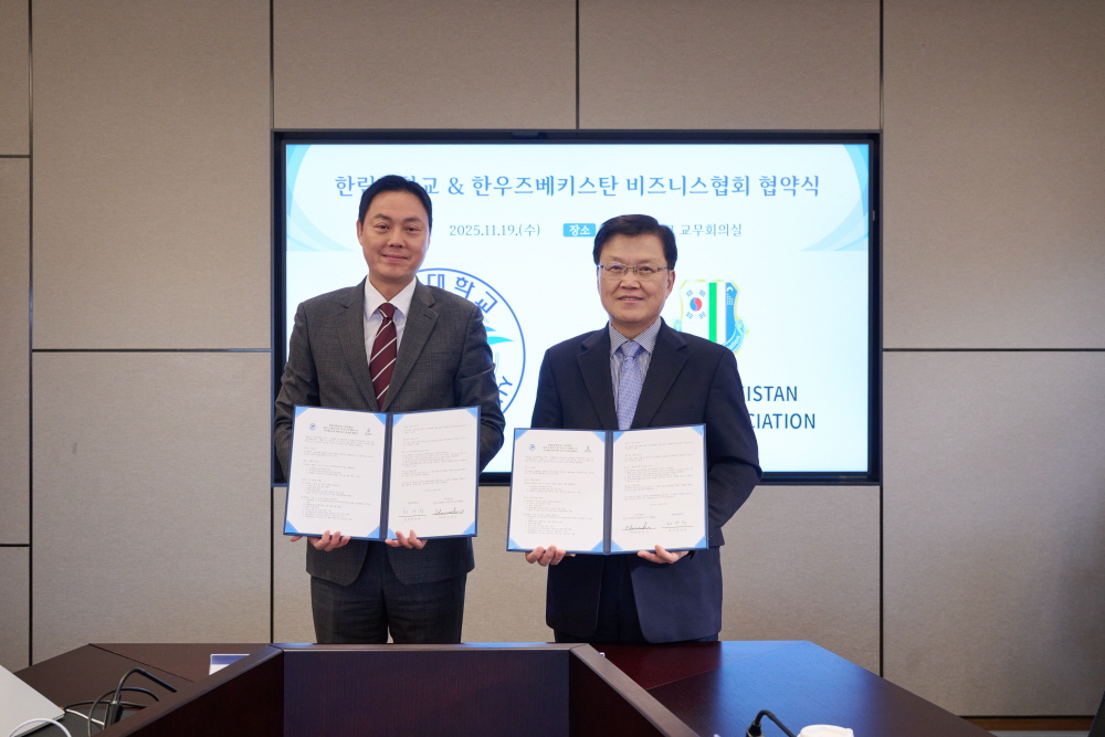 최양희 총장은 2025년 11월 19일(수) 교내 교무회의실에서 사단법인 한우즈베키스탄 비즈니스협회와 업무협약을 체결했다. 최 총장은 “우즈베키스탄 현지에서의 본교 홍보와 우수 인재 확보를 위한 협력 기반을 마련하게 되어 매우 뜻깊다”며 “이번 협약을 계기로 양 기관이 교육·연구·문화 등 다양한 분야에서 실질적인 교류를 확대해 나가길 기대한다”고 말했다.