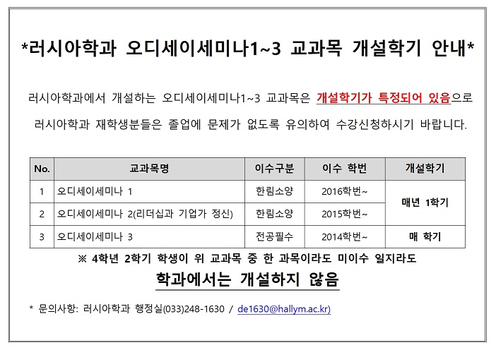 [필독] 러시아학과 오디세이세미나1~3교과목 개설학기 안내