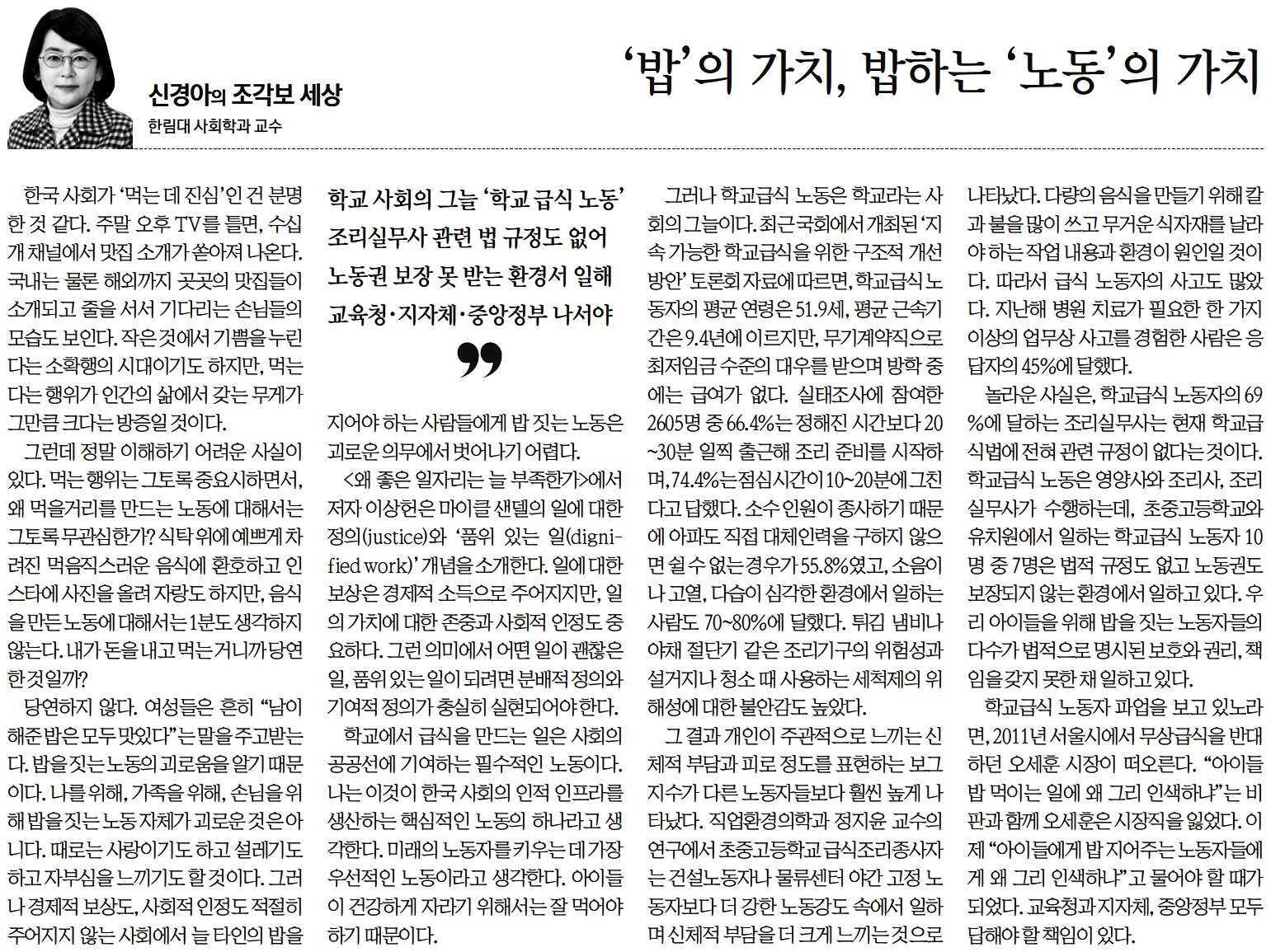-신경아(사회학과) 교수, 칼럼
